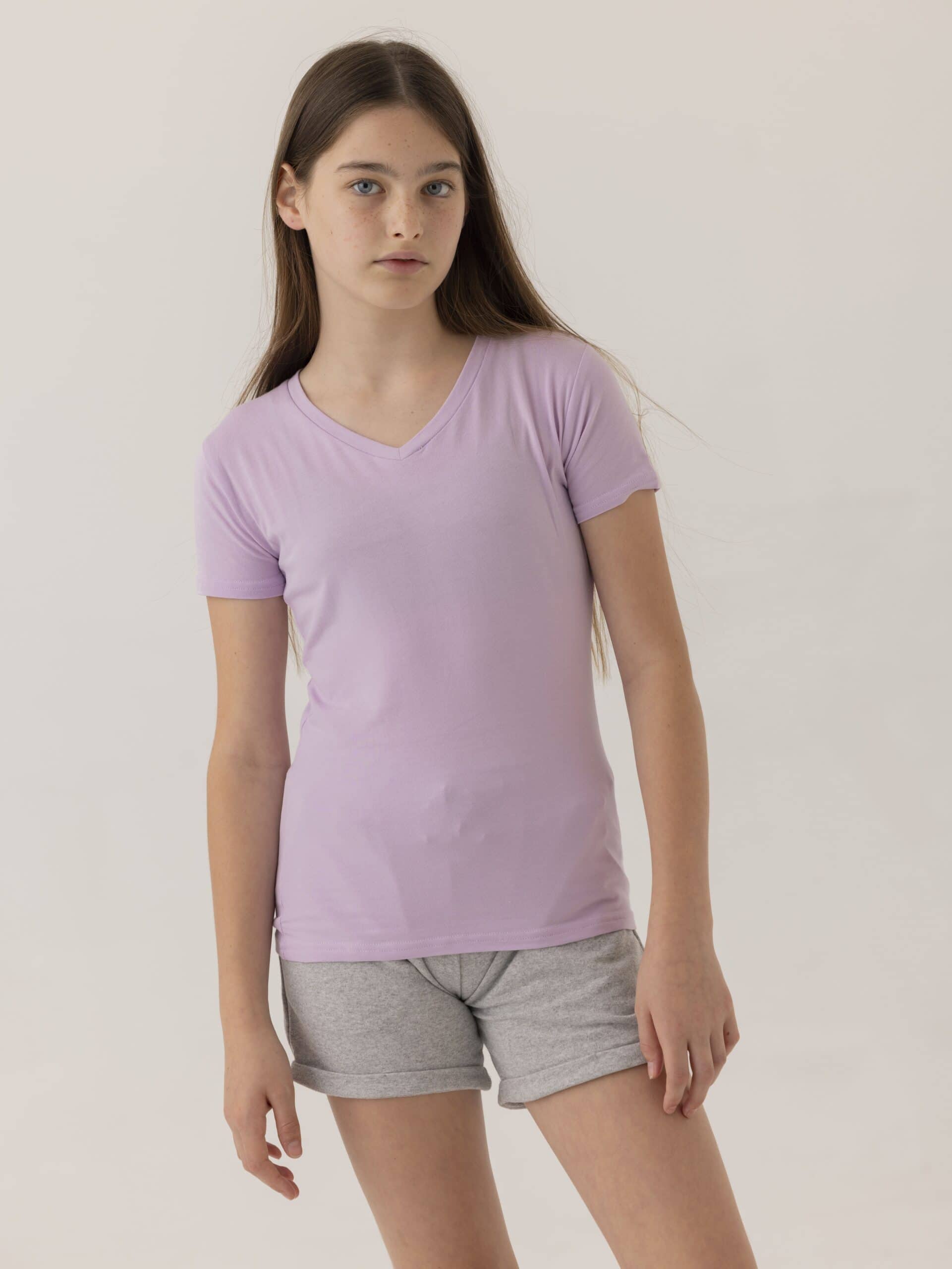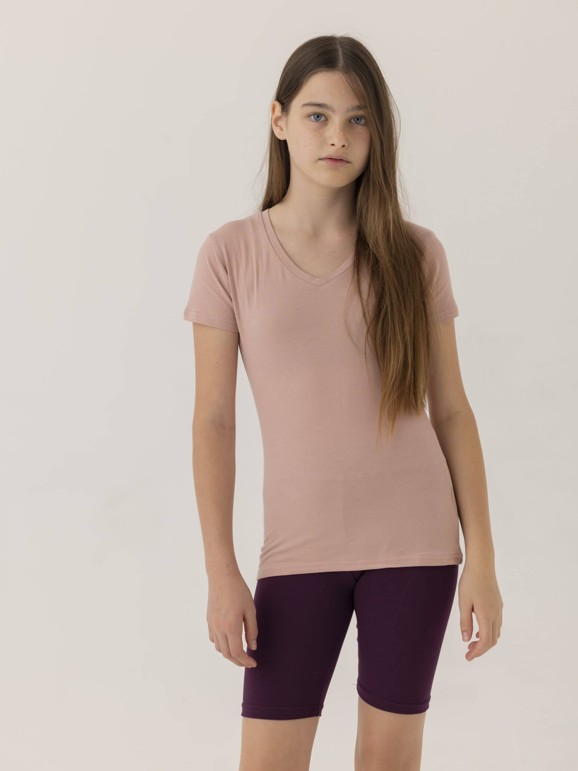 חולצת לייקרה ילדות צווארון V שרוול קצר