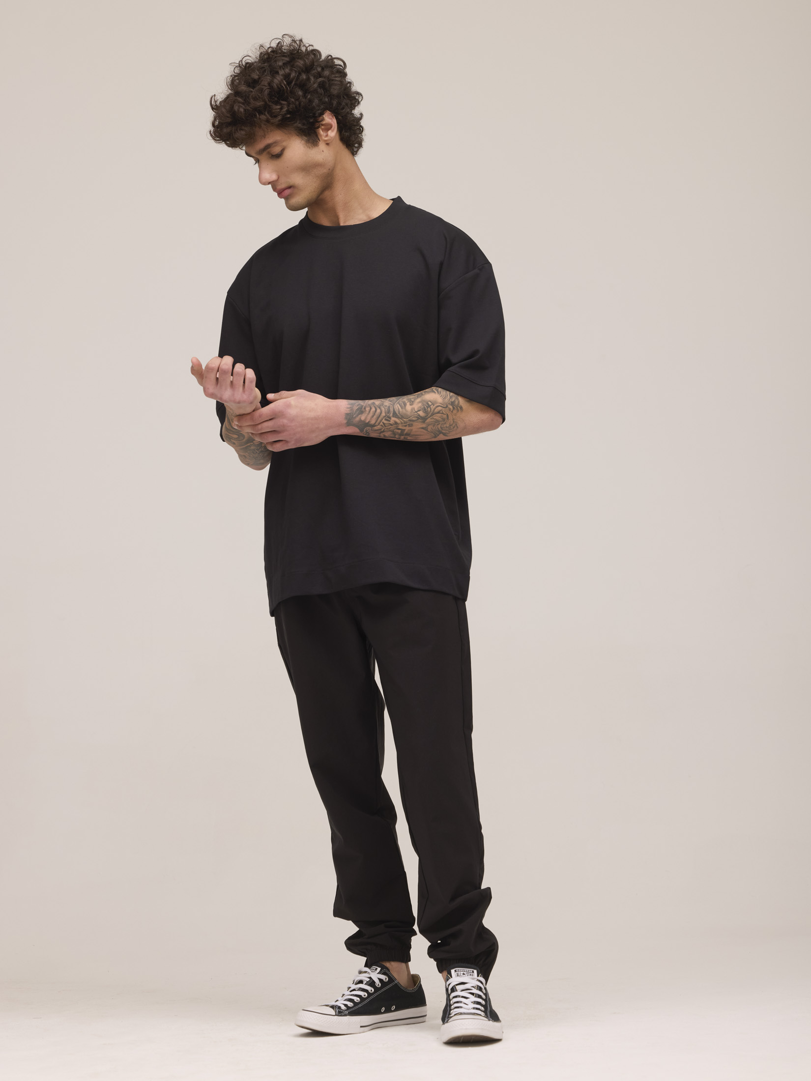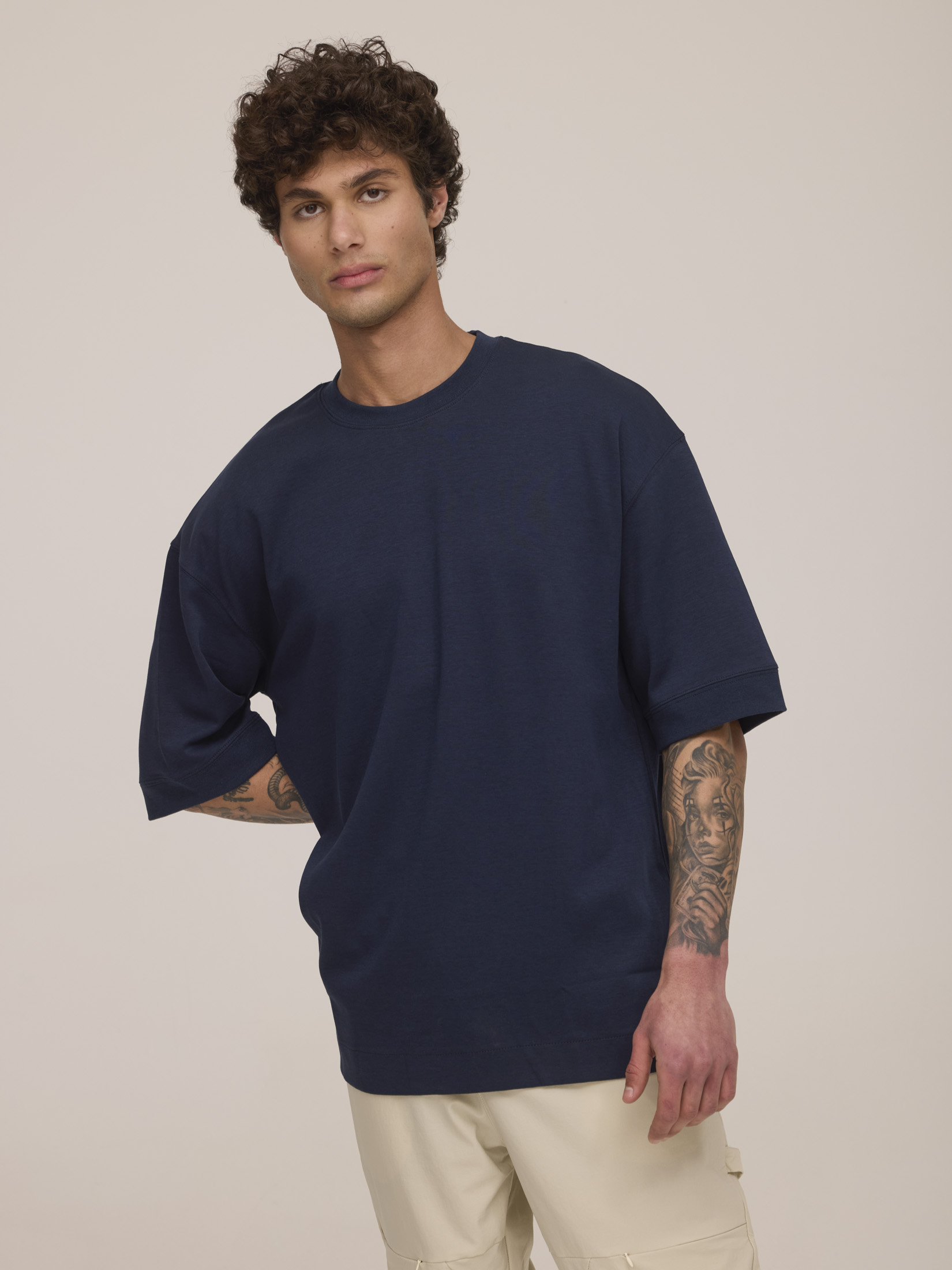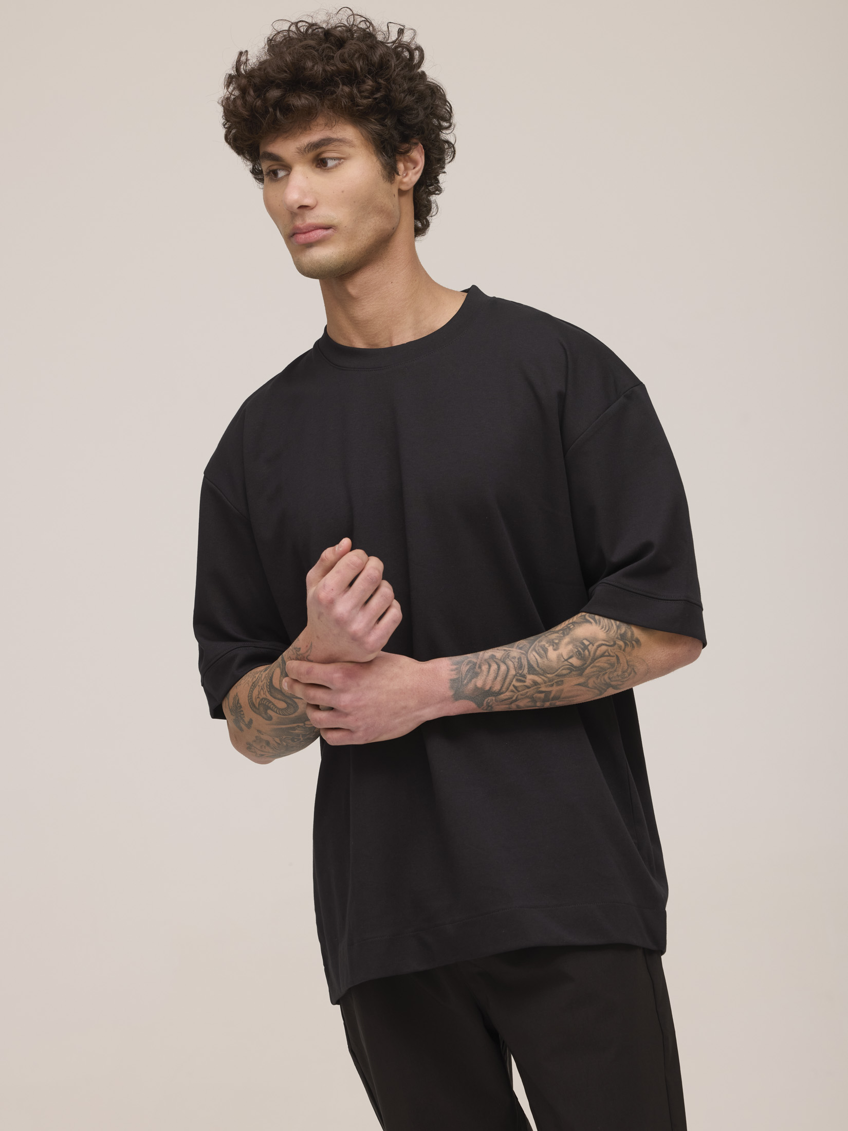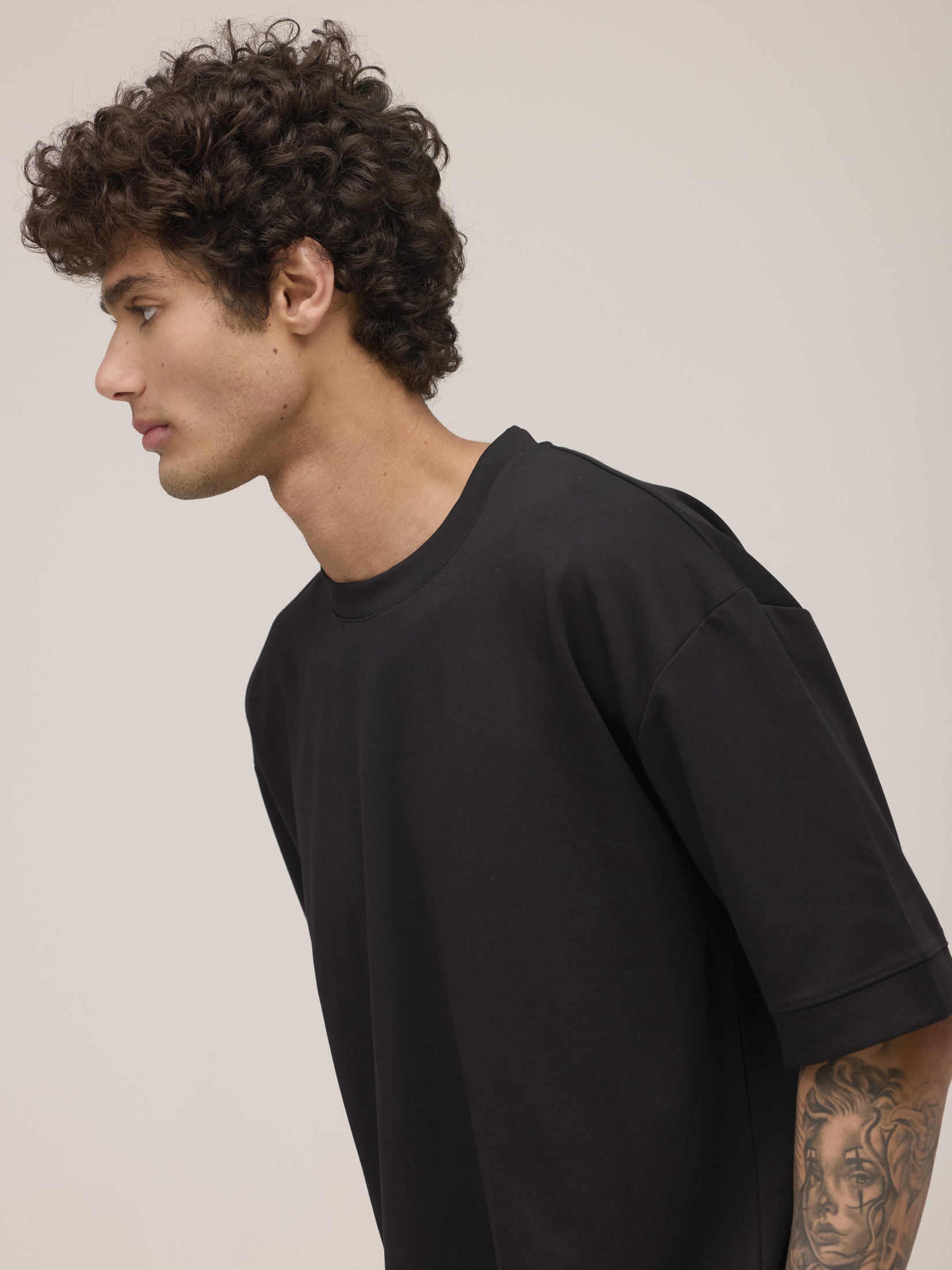 חולצת אוברסייז דגם לוק גבר צווארון עגול שרוול קצר