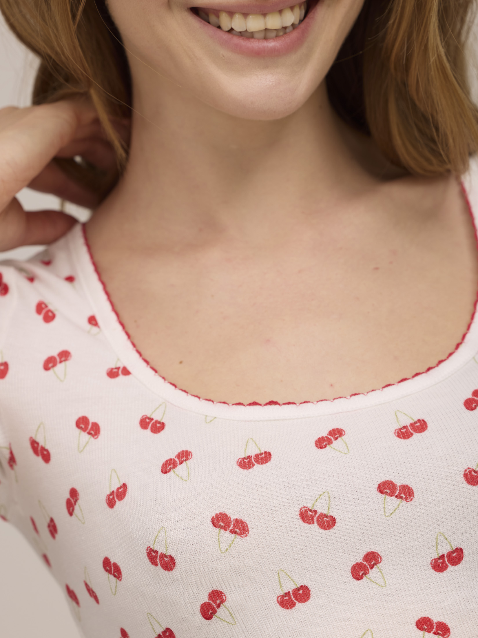 סט פיג׳מה ויסקוזה קצרה נשים דגם: דובדבן אדום
